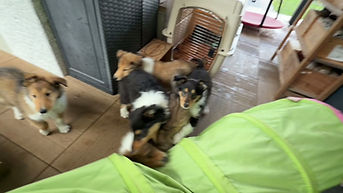 Die Colliewelpen von Seehain erleben früh aussergewöhnliche Situationen, damit sie keine Ängste entwickeln.